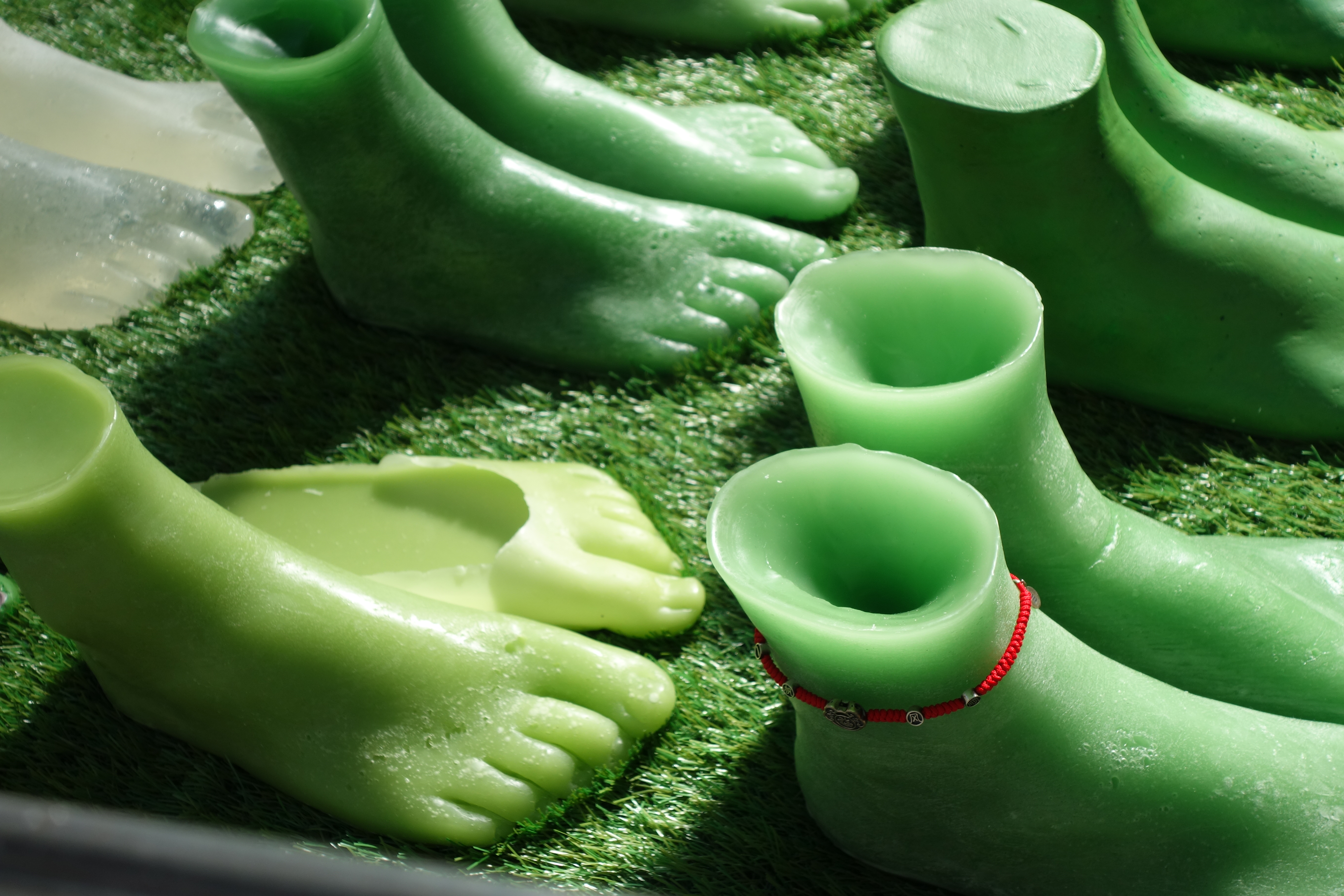 Plaster, glass wax, microcrystalline wax, paraffin wax, steel, artificial grass, paper, etc.