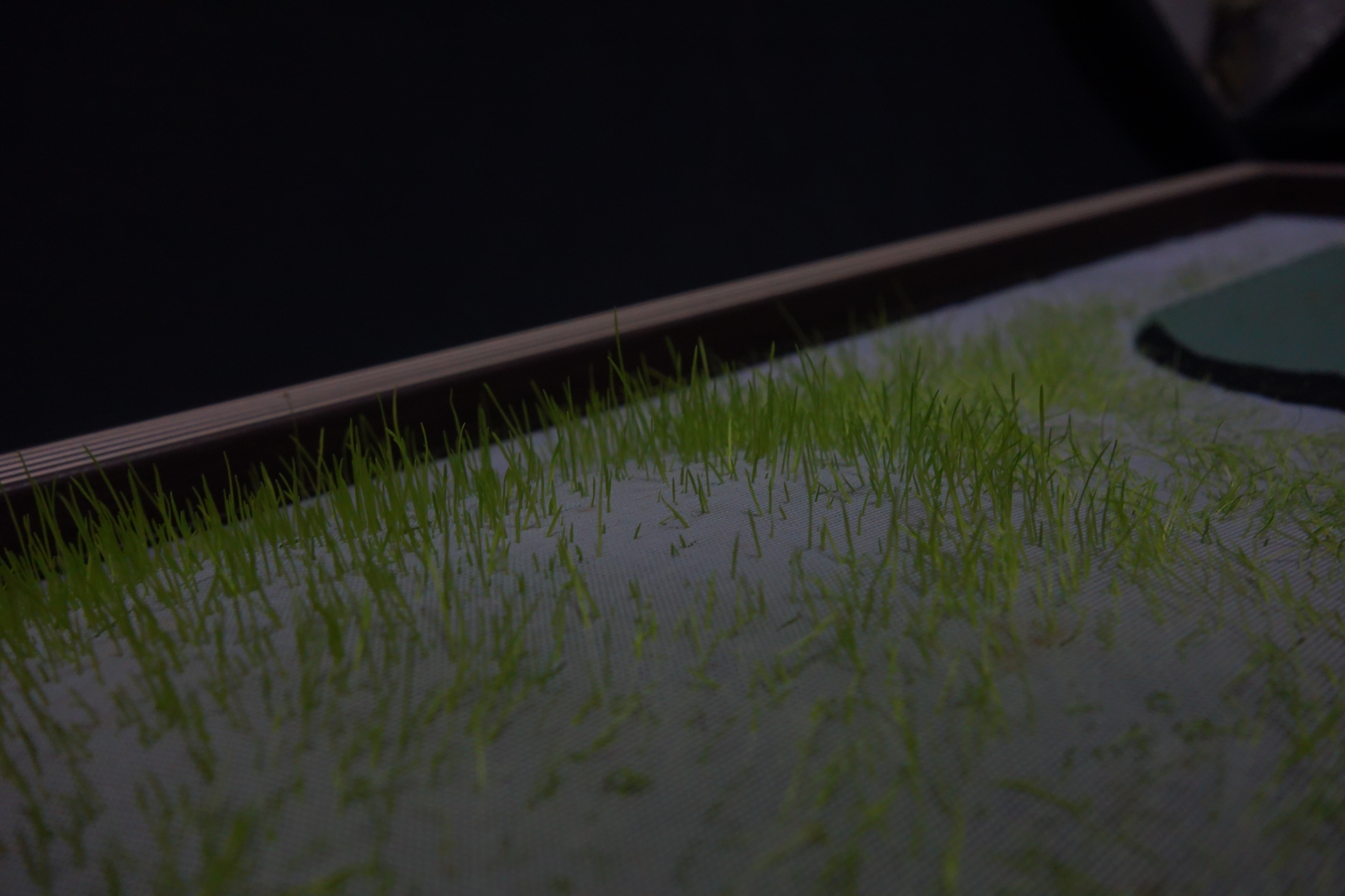 Materials: Frame, spandex fabric, crewel, grass.